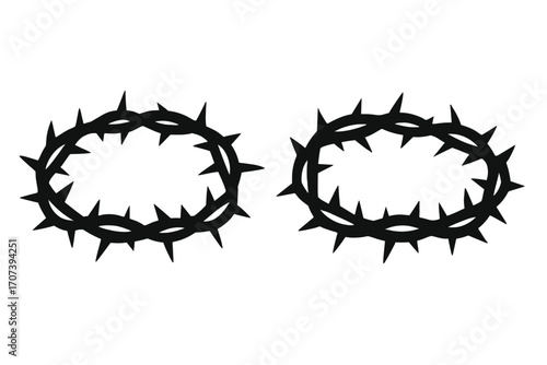 Christian crown of thorns with three nails. Easter day. Black silhouette, simple style. EPS 10. Vector illustrations