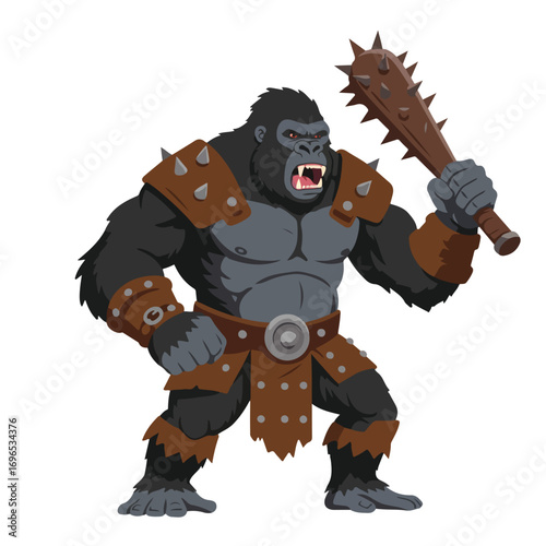 Monochrome vector illustration of an aggressive dog head wearing a spiked collar against a white background.