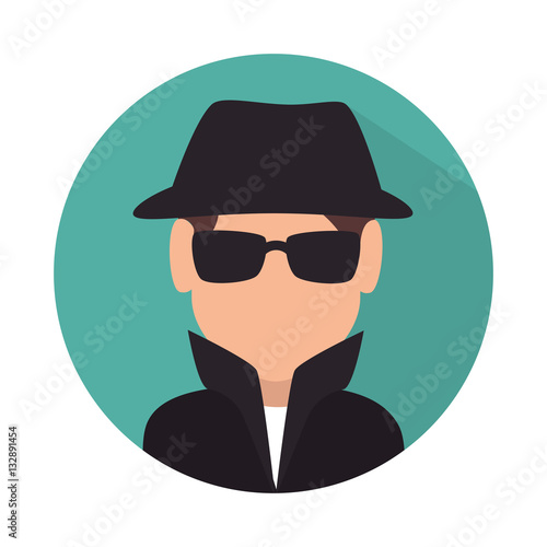 vector spy icon, detective cartoon man, crime