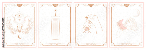 Cover set of magical tarot cards. Mystical templates for occult tarot cards, banners, flyers. Background of magic or association cards.