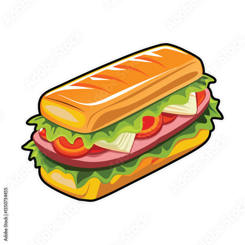 Simple vector illustration of a toast sandwich presenting fresh ingredients, perfect for a quick and easy meal