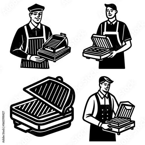 Grill and waffle maker icon set