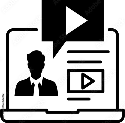 Live stream broadcast online video conference webinar presentation tutorial education learning person laptop vector art illustration