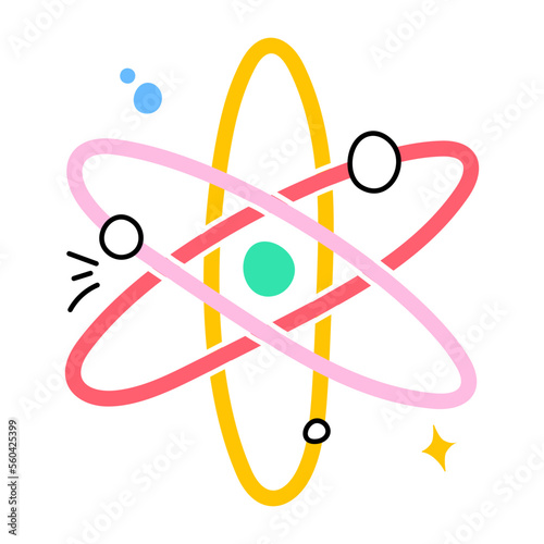 Atomic structure vector illustration, Vector illustration of an atomic structure with a central nucleus and orbiting electrons, symbolizing science and physics.