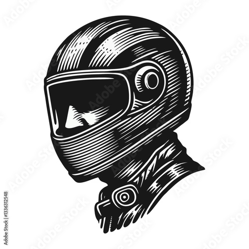 Motorcycle rider in action on the road. Detailed black and white vector illustration showing dynamic movement and sporty style in a set.