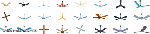 Electric Fan Icons set. Multi Series. Ceiling Fans, Propellers flat Vector . Electric Indoor Fans Symbol Pack. Air Conditioning, Cooling, Climate Control Technology. Household Appliance Isolated