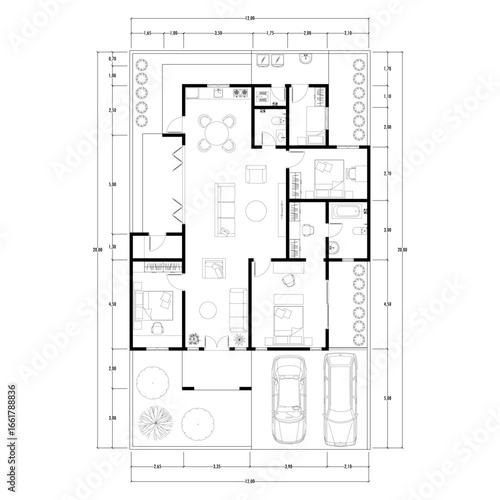 House architectural plan .Engineering design .Technical drawing background.Vector illustration.