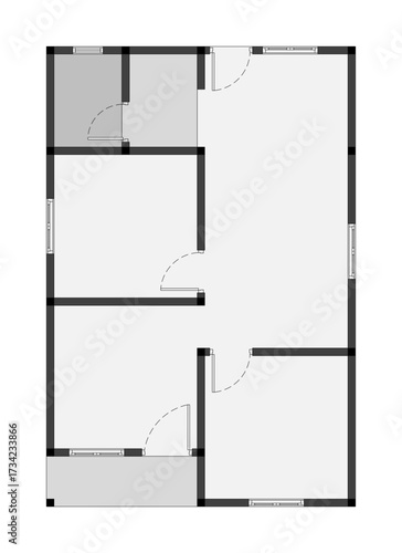 Isometric vector illustration blueprint floor plan the house isolated on white background. Realistic apartment floor plan blueprint icon in flat cartoon style. Vector unfurnished ground floor plan.
