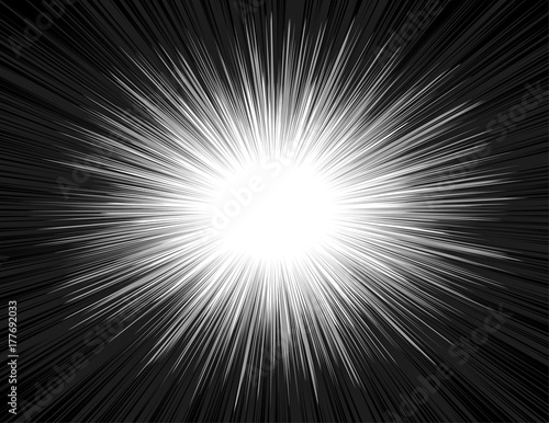 Dynamic red radial lines exploding from a central point on a white background, creating a comic book speed effect.