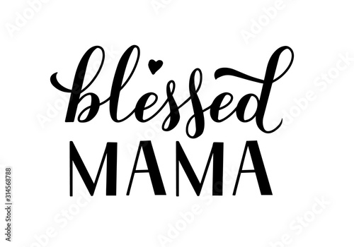 Blessed mama calligraphy hand lettering isolated on white. Inscriptional quote typography poster. Mother s day greeting card. Easy to edit vector template for, banner, t-shirt, mug, label, flyer, etc.