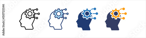 Industrial manufacturing and semiconductor technology line icon set. Vector pictograms of clean room, robotics, factory, and financial analysis, thin linear illustration.