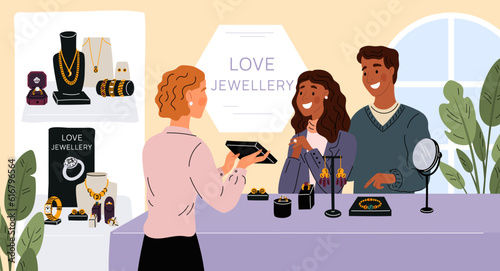 saleswoman at cash desk counter big fashion shop super market female handbag shopping mall interior modern boutique horizontal flat