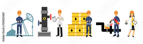 Oil Industry Worker Engaged in Maintenance and Technical Inspection Vector Set