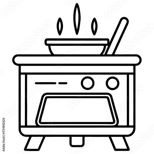 Cooking Range with Hood Icon, Silhouette, Vector, Illustration, Outline, Logo, White Background.