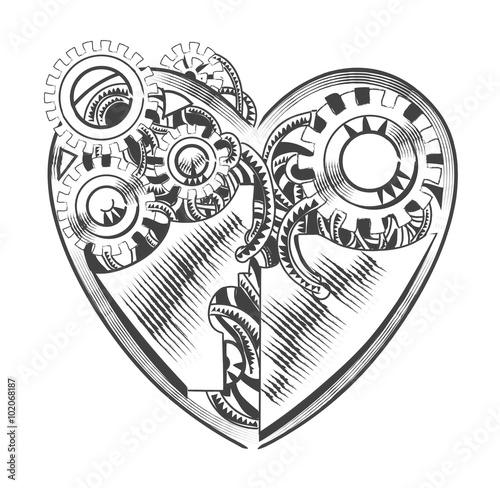 Cyberpunk girl. Robot woman portrait. Old school tattoo vector art. Hand drawn graphic. Isolated on white. Traditional flash tattooing