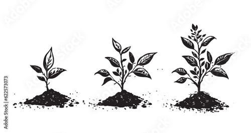 planting steps, how do plants grow step by step, black outline doodle vector illustration