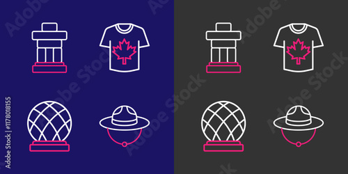 Set Canadian maple leaf, Mountains, Montreal Biosphere and Acorn icon. Vector