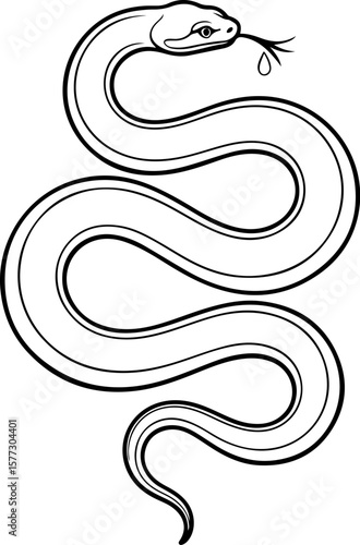 Stylized serpent with alternating bands and a forked tongue slithering across the frame gracefully