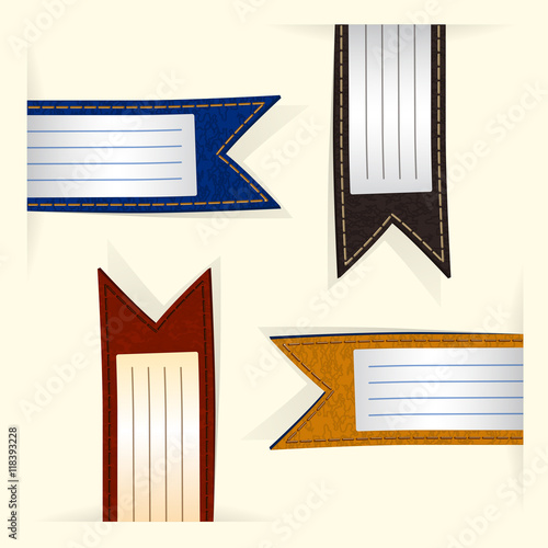colored leather labels looking out of paper at different angles
