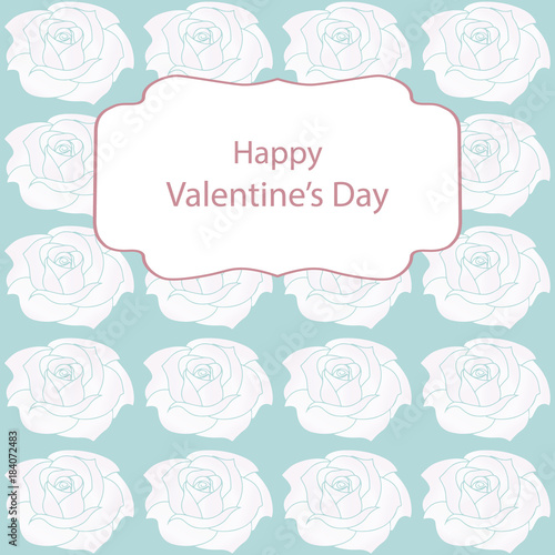 Greeting card with Valentine's Day with gently green backgrounds and roses.