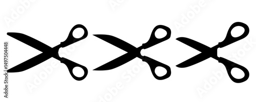 Scissors icon set. Simple silhouette of open scissors. Scissors logo icon. Stock vector illustration isolated on white background.