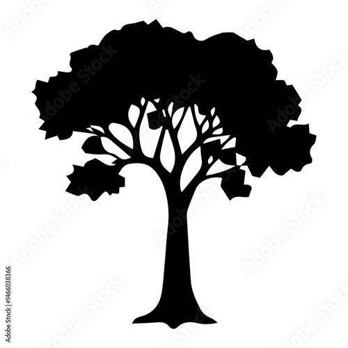 Silhouette of a Deciduous Tree with Dense Foliage and Intertwined Branches for Ecological Studies and Nature-Themed Design Projects