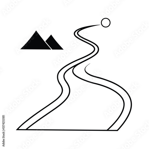 Geometric mountain with sharp edges and two minimal cloud formations separated by horizontal lines. Ideal for nature concepts, geometry, balance, tranquility, minimalism, creativity, and abstract