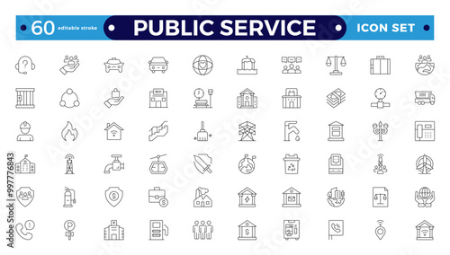 Public Administration outline icons. Minimalist thin linear web icon set. Line icons related to public utilities. Gas, electricity, water, heating. Editable stroke outline icon.