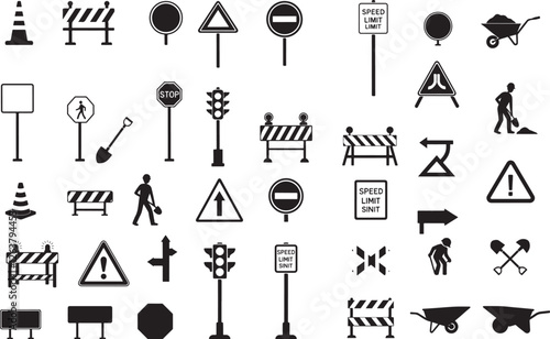 Set of vector illustrations of male traffic police officers managing vehicle flow, ideal for road safety education, transportation materials, and public guidance content