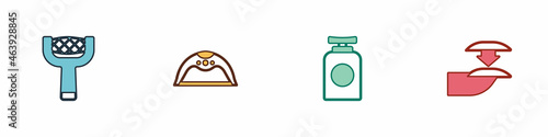Set line Pet first aid kit, food bowl and Nail file pet icon. Vector