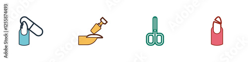 Vector illustrations of nails salon set on white background. Colorful realistic illustration