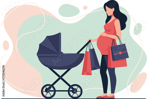 Vector illustration depicting a pregnant couple tenderly embracing, representing the love and anticipation of parenthood.