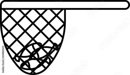 one continuous line drawing of a fish caught in a landing net for fishing hobby concept vector linear illustration