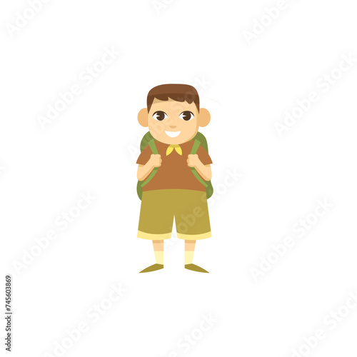 Set a girl with a hairstyle of two large beams tourist on nature. Camping. Overnight, overnight in a tent, picking mushrooms, fun and relaxation. Children's camp. Scouts. Cute Vector Illustration