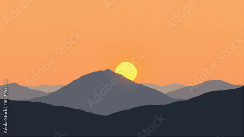 Sunset Over Layers of Rolling Hills and Mountains Landscape. Illustration of a Mountain Landscape at Sunset.