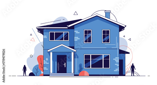 Simple Suburban Houses and Birds Illustration. Vector Image