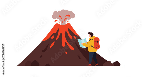 Ink drawing of a winding desert road with smoke plume rising from distant mountains. Vector hand drawn illustration
