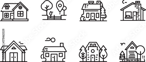 Villa of house vector Outline,line set icon.Vector illustration building of home.Isolated Outline,line set icon villa of house on white background .