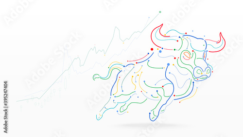 Abstract financial chart with bulls and bear in stock market on blue color background