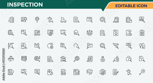 Inspection icon set. Contains related to inspection, survey, on, checkmark, evaluation, exam and more. Isolated icons design. Vector icons editable stroke.