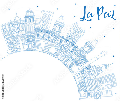 Bolivia , La Paz outline skyline, bolivian flat thin line icons, landmarks, illustrations. Bolivia , La Paz cityscape, bolivian vector travel city banner. Urban silhouette