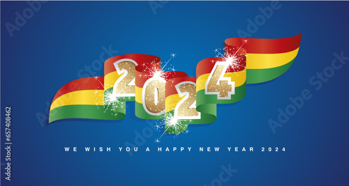 Bolivia flag state symbol isolated on background national banner. Greeting card National Independence Day of the Plurinational State of Bolivia. Illustration banner with realistic state flag.