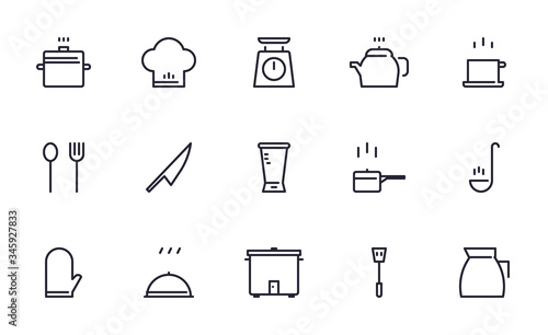 Home furniture and organization outline icons set – linear, storage, decor symbols