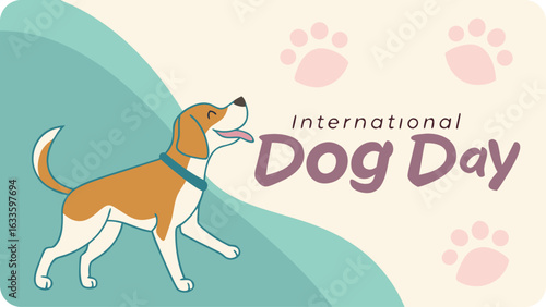 Invitation celebrating National Dog Day 26 august banner vector flat illustration. Various cute doggy posing isolated on gray background. Promo for holiday of domestic animal competition collection