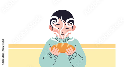 Little Boy Inhaling and Exhaling Vector Cartoon illustration. Healthy asthma patient breathing normally with calm