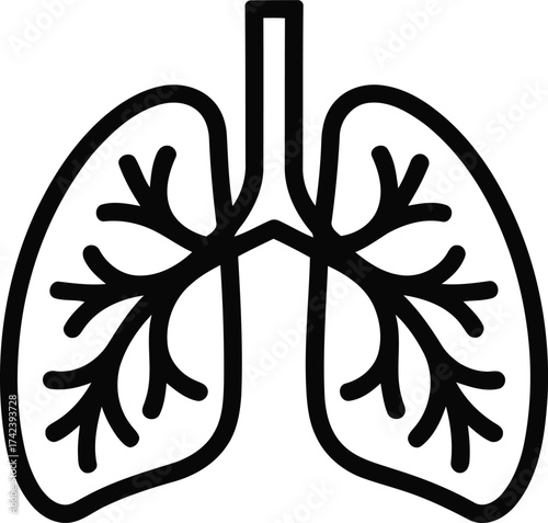 A set of continuous line art icons: human lungs, breathing, and respiratory symbols
