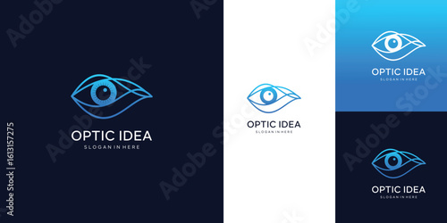 Eye Logo design vector template. line media icon. Vision Logotype concept idea, vision logo concept. Flat line eye icon design template.