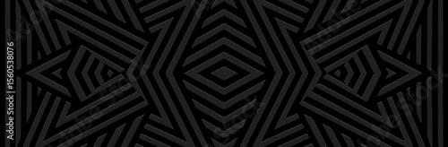 Banner, cover design, wallpaper. Geometric ethnic decorative  pattern on a dark blue background. Embossed 3D ornaments, arabesques, mandala, fresco, painting of the East, Asia, India, Mexico, Aztec