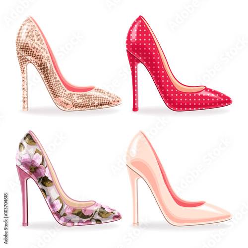 Beautiful female shoes isolated on transparent background.High-heeled shoes, sexy shoes, patent leather shoes.Vector illustration.