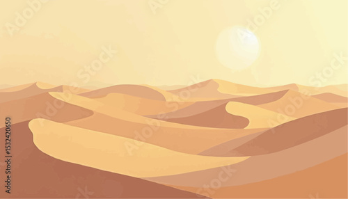 A barren desert with rolling sand dunes as far as the eye can see. The landscape is rugged and unforgiving with scorching hot temperatures during the. Cartoon Vector.